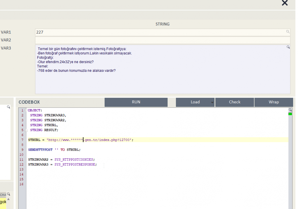 Canias ortamında bir sitenin kaynak kodlarını çekip işlem yapmak istersek SYS_HTTPPOSTRESPONSE komutunu kullanırız.